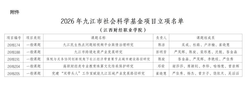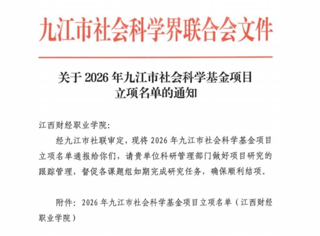 • 经贸学院5项课题获2026年九江市社会科学基金项目立项