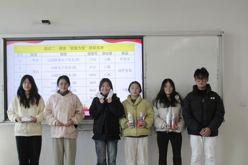 本届寝室文化节以“寓见美好,共筑青春”为主题,设置了“智趣相投”看图猜谜、“变废为宝”环保创意和“净显风采”卫生评比三项内容丰富、形式多样的活动。各寝室踊跃参与,在趣味协作中增进默契,在创意实践中传递绿色理念,在整洁环境中共建和谐家园,充分展现出经贸学子良好的精神风貌与创造力。经综合评审,多项奖项花落有主,获奖寝室分别荣获小米音箱、充电宝、洗护套装及荣誉证书等奖励。
